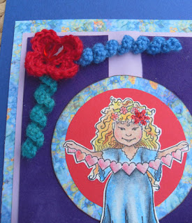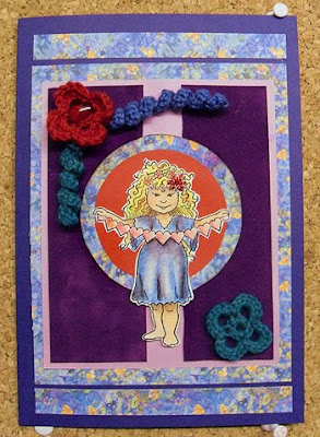 Abgesehen vom holprigen Layout hat meine Karte Häkelblümchen. Die haben im Moment ca. 20 Prozent aller Stempel-Karten, warum auch immer. Aber ich habe noch Häkelspiralen hinzugefügt. Und hoffe, dass die nicht überall zu sehen sind.