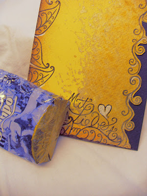 Und der gold-gelbe Farbverlauf ist hübsch, sieht irgendwie gebrusht aus, nicht wahr? Soll ich verraten womit der gemacht ist: Mit VIEL Goldfarbe (Marvy Goldpen) und diesem außergewöhnlichen Brush-Tool: