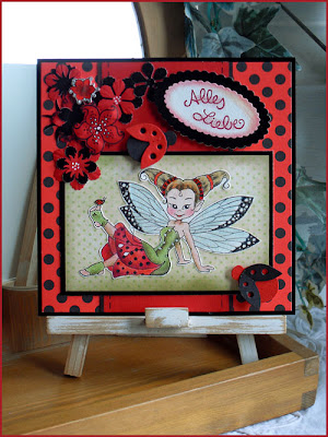 Denn so wie mir die Marikä-Karte gefällt die ich nun als Kontrapunkt zum Fliepi gewerkelt habe, kann es wohl sein ich mache mehr in dieser Farbkombination. Schwarz-rot hat was. Und sei es zwei kleine Flügel.