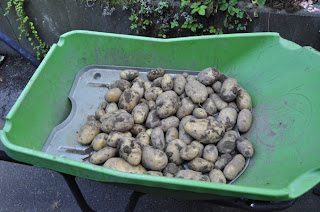 Kartoffeln hatte ich ja neulich schon ausgegraben. Diese eine Kartoffel war so dick… da konnte ich alleine schon von satt werden.