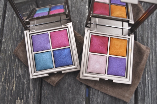 Die geöffneten Muster standen in dem gerammelt vollen Laden und sprangen mich an. Die sehr nette Verkäuferin sagte nur etwas von „Limited Edition“ und schon hatte ich die Sachen im Einkaufsbeutel. Daheim ausgepackt überraschte mich der Lidschatten mit flauschigen Samtbeuteln: