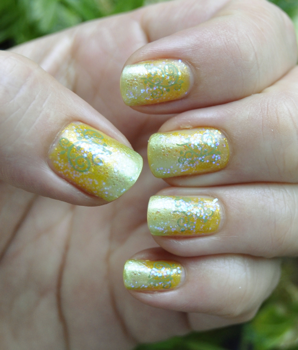 After a first colouring attempt with two pearl nail polishes from Kiko I was not very happy how the colour gradient came out. Can anyone see I wanted a gradient from green to yellow? I see almost noting of it.