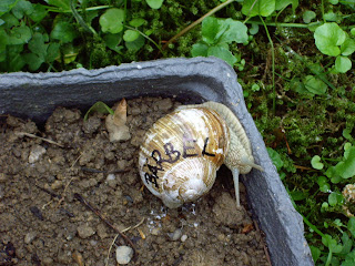 Meine herzallerliebste Künstler-Garten-Haustraum-Fee Elvira berichtet schon seit Tagen von ihren supersüßen Weinbergschnecken. Die alle einen Namen haben. Ich hab Elvira angebettelt, einem Neuzugang diesen wunderschönen Namen „Bärbel“ zu geben. Und sie hat es getan! Guckt mal da: