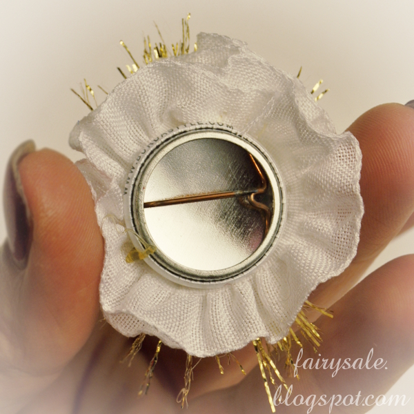 Das Rüschenband mit ein paar Stichen zusammen nähen, mit Heißkleber an dem Button fixieren, das Stempelmotiv drauf und fertig ist der feminine Karnevalsorden!