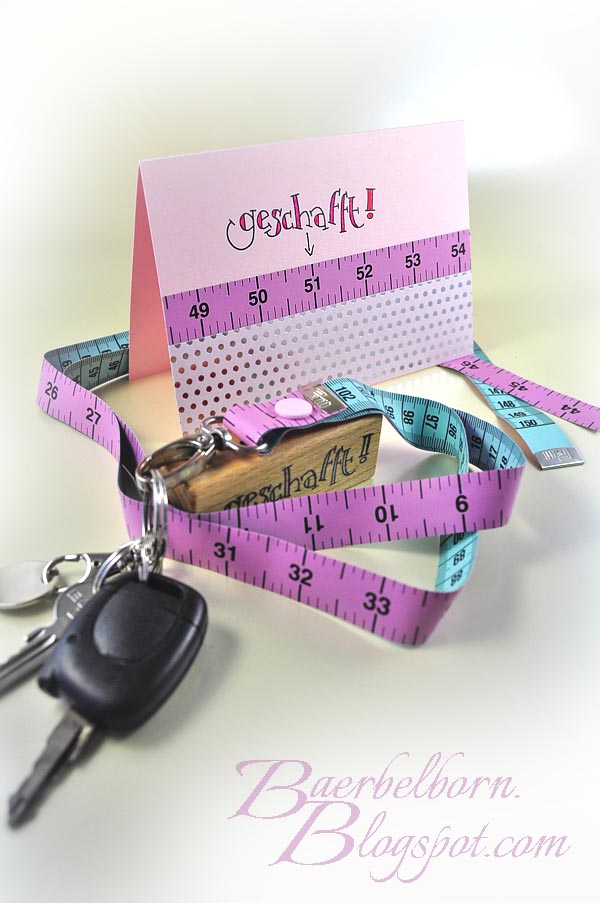 Noch ein kleines Augenfutter mit Maßband und Grußkarte. Wer mag, der kann auch solche Grußkarten nachbasteln und ein Schlüsselband dazu schenken. Tolle Idee!