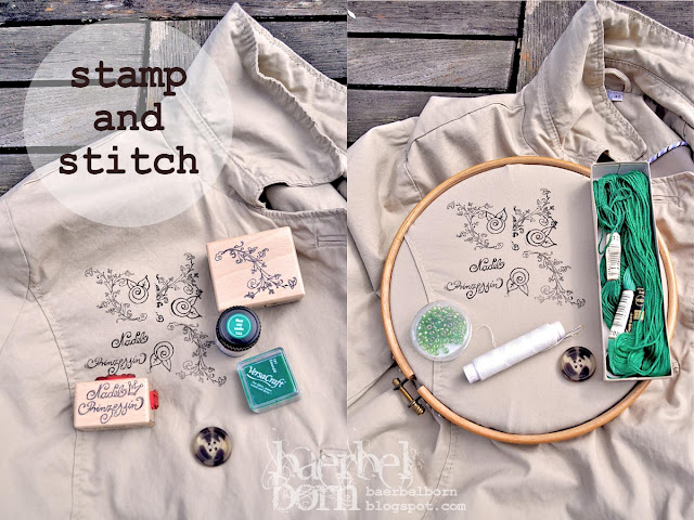 Even on clothes this technique works magic! With a few stamps and some stiches you can upcycle every garment witout effort!