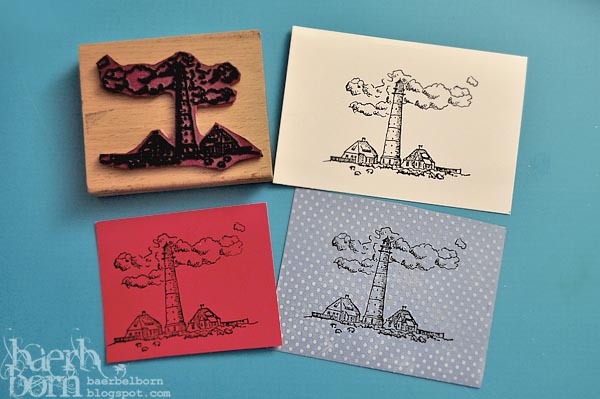 Nun muss nur noch geklebt werden. Fertig ist euer Motiv. Ich habe eine Karte mit Leuchtturm gebastelt. Dieses Motiv zeigt den Leuchtturm „Westerheversand“, ein Wahrzeichen der Nordsee. Ich habe ihn vor einer Ewigkeit gezeichnet und völlig vergessen. Meine Stempelfreundin Heike hat ihn diese Woche ausgegraben und für eine Musterkarte der Challenge Paperminutes „Zeig mir Deutschland“. Da musste ich mitmachen! Danke Heike, für den festen Anstupser! Ich liebe diesen Stempel (und ja, ich hatte ihn doppelt).